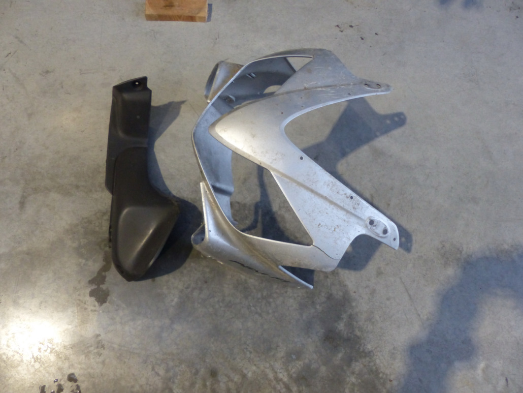 Je fourni une tête de fourche fissurée mais réparable ainsi que le cache plastique supérieur gauche.