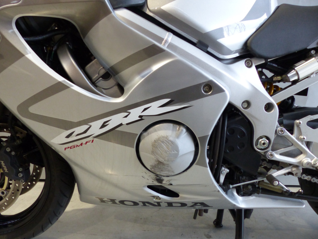 REMARQUE(S) : CBR600F accidentée tournante et roulante parfaitement droite sur ses roues et hyper propre avant la chute.